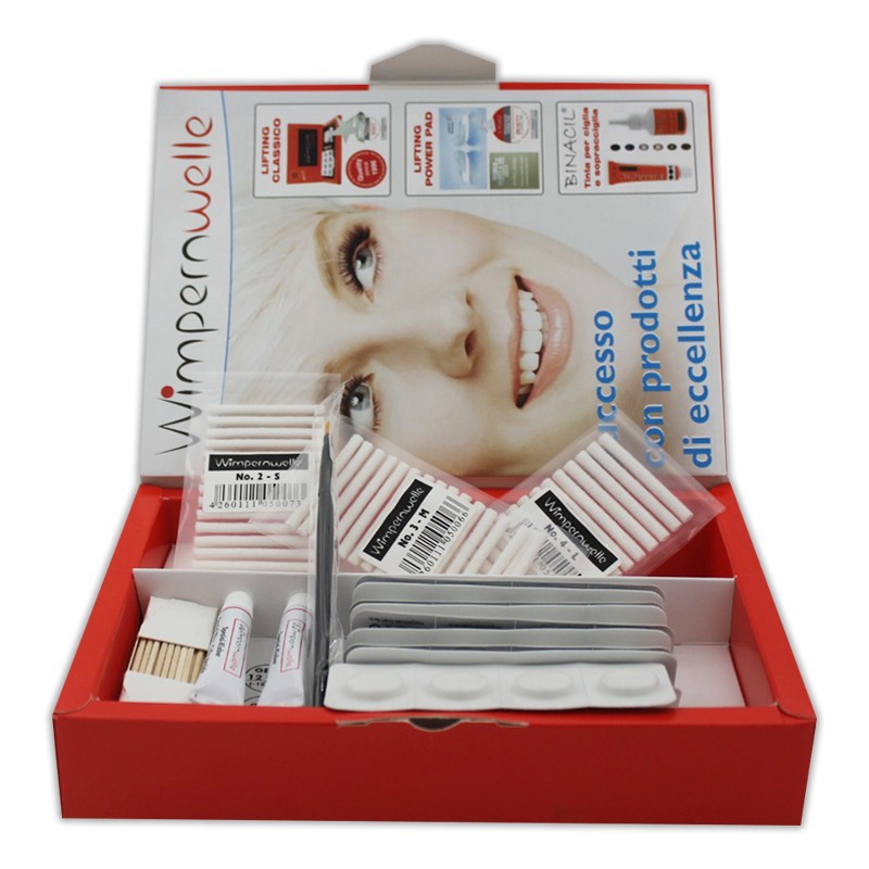 Il Kit Permanente Ciglia Wimpernwelle contiene tutti i prodotti e gli accessori necessari per effettuare la permanente ciglia con metodo tradizionale. Con un solo kit possono essere effettuati 24 trattamenti di lifting ciglia Il Kit Permanente Ciglia Wimpernwelle contiene: