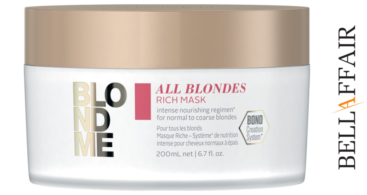 La maschera Schwarzkopf Professional BlondMe All Blondes Rich è un trattamento altamente nutriente appositamente sviluppato per i capelli di spessore medio e grosso, adatto sia per i capelli biondi naturali che schiariti. Questa maschera agisce sia sulla struttura interna che esterna dei capelli per garantire un completo trattamento e condizionamento, particolarmente importante per i capelli biondi schiariti che tendono a essere più fragili e danneggiati. La tecnologia innovativa di creazione di legami 3D aiuta a ripristinare e ricostruire i legami interni dei capelli, rendendoli più forti dall’interno verso l’esterno. Inoltre, bilancia il livello di pH delle ciocche, riducendo la rottura e le doppie punte. Per migliorare ulteriormente l’aspetto e la condizione della chioma, la formula contiene anche olio di Marula, che agisce sulla superficie dei capelli rendendoli morbidi e lucenti.