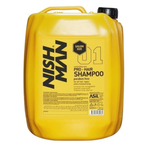 Nish Man Pro-Hair Shampoo Keratin Complex 5000ml nella confezione da salone – il miglior shampoo per uomo, pulisce i capelli in modo da non esfoliarli e non lasciare una sensazione di tensione sul cuoio capelluto. Perfettamente adatto per ogni lavaggio dei capelli. Shampoo nutriente e idratante, senza siliconi e parabeni, che ripristina l’aspetto e la consistenza naturali dei capelli.